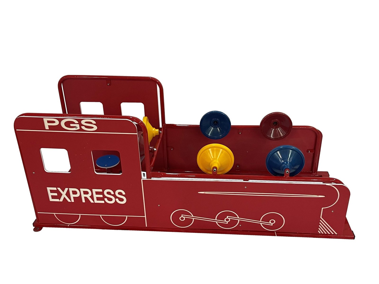 Designed for children to play and pretend to drive a vehicle. It is constructed with powder coated steel, limited lifetime warranty Trex decking, stainless steel fasteners and 1/2″ HDPE plastic that will not crack or fade.  Perfect for ages 2-12