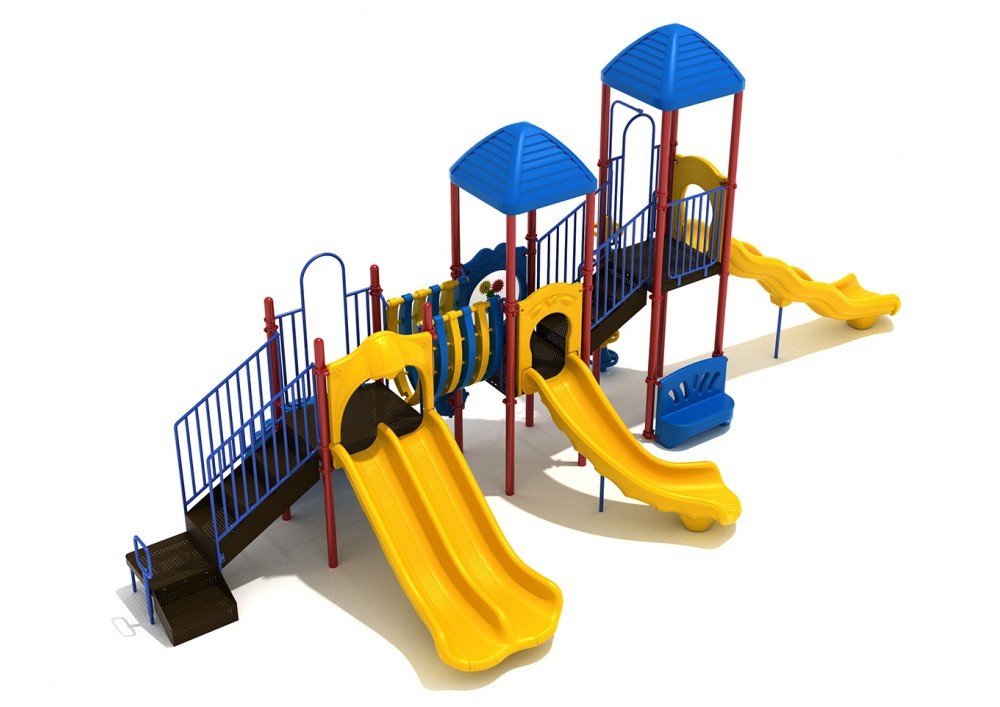 Children will zip through the heights with this lovely, expansive playset. The Ladera Heights structure boasts a whopping three slides, making it a favorite for rambunctious kids of all ages. They’ll be brimming with delight as they shoot down the structure’s Left Turn and Wave Slides. Additionally, a Double Slide provides the perfect avenue for an afternoon of friendly competition as kids race each other to the bottom. An ideal structure for kids who love to climb, the Ladera Heights boasts a number of scaling opportunities, including a Pod Climber and an impressive Rock Hole Climber modeled after climbing gyms. On the ground floor, a Ship’s Wheel and Bench Panel act as whimsical portals into a realm of imaginary and dramatic play. A Gear Panel on one of the platforms provides mental stimulation for kids who love to solve puzzles. And a Line Roof covering the two platforms offers plenty of shade and protection on hot and sunny days. The Ladera Heights model is available in both the neutral and primary color palettes as our Quick Ship option.